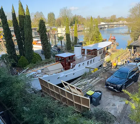 The Phoenix houseboat arrived with corrosion in the hull steel. We removed the rust, cut back to sound metal, and replaced the affected sections with new plate to restore strength and watertight integrity.